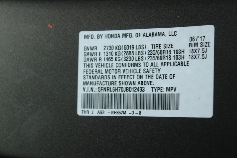 - VIN : 5FNRL6H70JB012493
