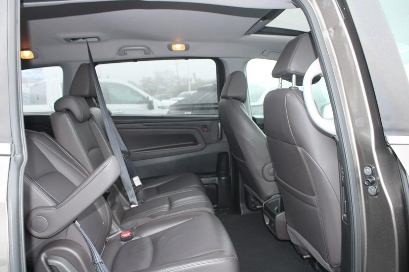 The leather seats in this mini van are a must for buyers looking for comfort, durability, and style. Apple CarPlay: Seamless smartphone integration for this Honda Odyssey - stay connected and entertained on the go! See what's behind you with the back up camera on this mini van. Never get into a cold vehicle again with the remote start feature on this mini van. This Honda Odyssey features a hands-free Bluetooth phone system. The vehicle keeps you comfortable with Auto Climate. This vehicle offers Android Auto for seamless smartphone integration. This mini van has auto-adjust speed for safe following. This unit has a clean AutoCheck report. This mini van emanates grace with its stylish gray exterior. Enjoy the convenience of the power liftgate on this Honda Odyssey. Front wheel drive on this Honda Odyssey gives you better traction and better fuel economy. This Honda Odyssey has a V6, 3.5L high output engine.